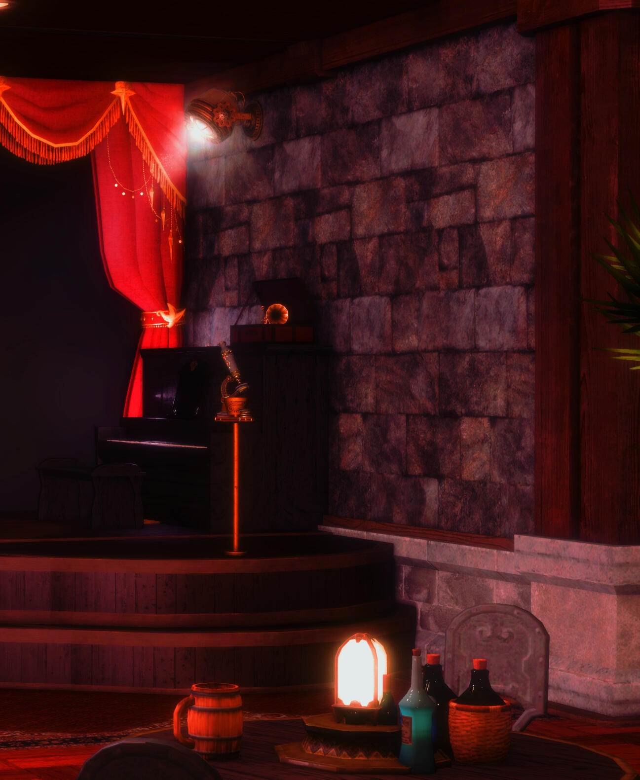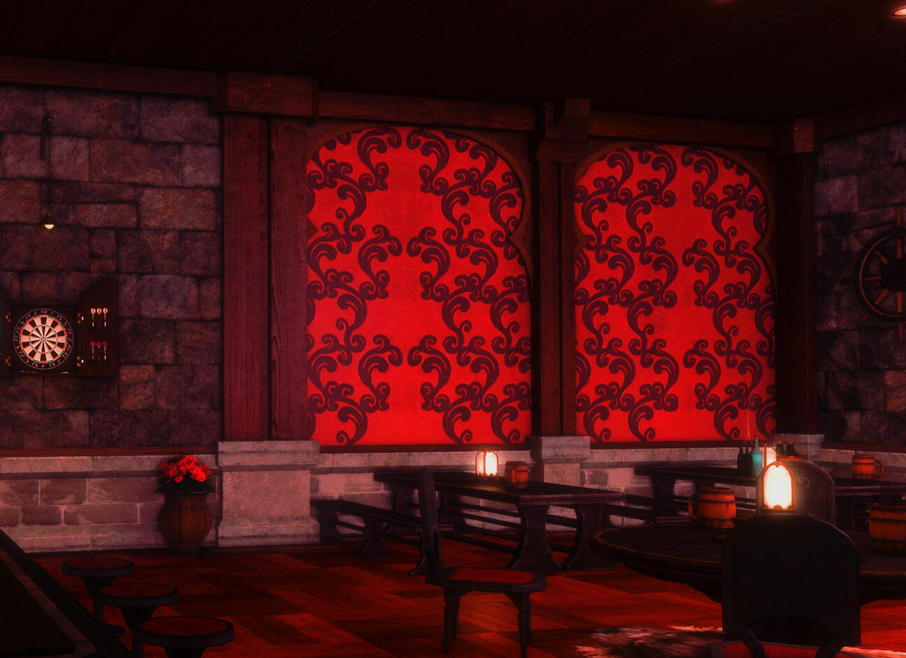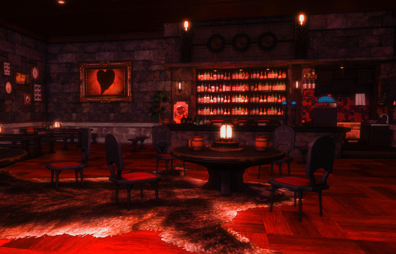 The Scarlet Steel Tavern is a front for the mercenary group Scarlet Forest, functioning as both venue and guild hall. The tavern is run by their leader, Ayame, and her tight-knit family. The space is an authentic Ishgardian themed tavern, nestled in Foundation. The venue features a robust menu, and wonderful musical talent, which aids the heavy focus on coziness and comfort. It is a perfect place to share a drink or a story with people from all walks of life.